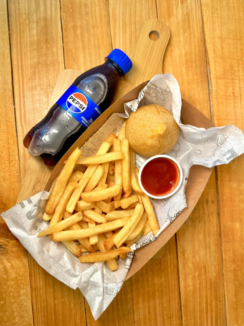 1 coxinha tradicional crocante, acompanhada de batata frita sequinha e 1 refrigerante de 200ml. Um combo prático, saboroso e perfeito para qualquer momento do dia.